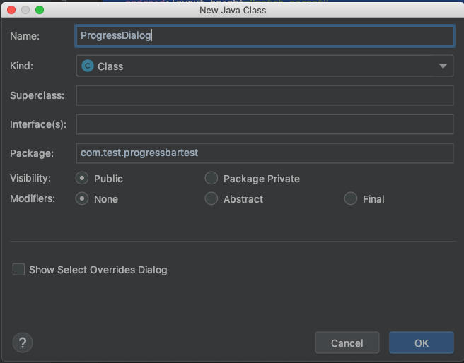로딩창을 위한 새로운 자바 클래스파일을 추가합니다.