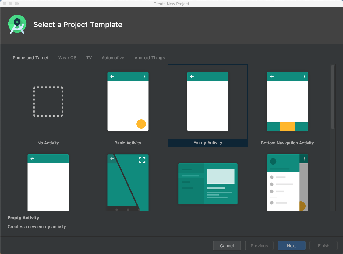 템플릿은 아무것도 없는 Empty Activity를 선택했습니다.